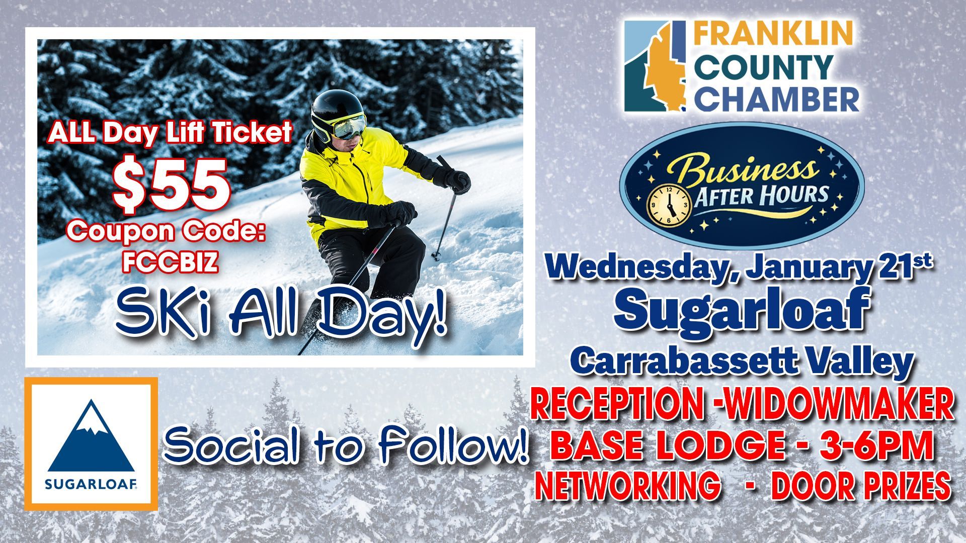 Business After Hours is a two-hour event that is hosted by a Franklin County Chamber of Commerce member. Networking is the key to promoting the business community in Franklin County. Our members have a chance to connect with other businesses throughout Western Maine. These events are open to anyone in the community and free to attend.